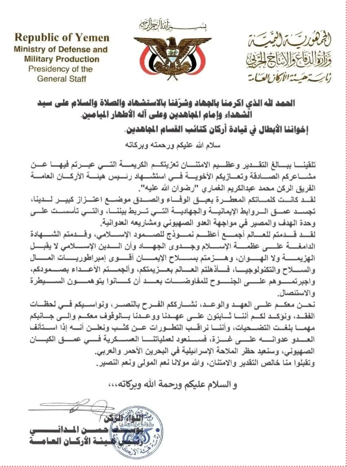 胡塞组织总参谋长优素福·迈达尼在信中写道:“我们正在密切关注事态发展,并宣布,如果敌人恢复对加沙的侵略,我们将恢复深入这个犹太复国主义实体的军事行动,我们将恢复对以色列在红海和阿拉伯海航行的禁令。”胡塞组织没有正式承认他们在该地区的行动已经停止。报道称,胡塞组织袭击航运的行动已造成至少9名海员丧生,4艘船只沉没。这场行动扰乱了红海的航运,战前每年约有价值1万亿美元的货物经由红海运输。